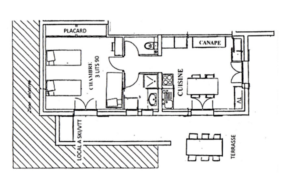 Le gîte se compose d'une cuisine équipée, un salon avec un canapé-lit pour 1 personne, une chambre avec 2 lits 90 et 1 lit superposé, une salle de bain, un WC indépendant. Equipement pour bébé sur demande, local à skis collectif, parking privé.